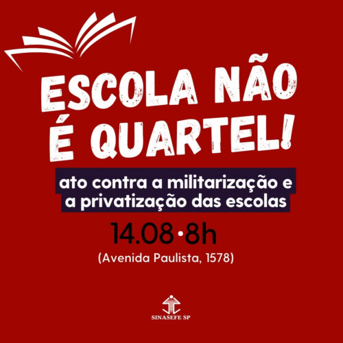 Nesta quarta-feira (14) , estudantes e trabalhadores da educação realizam protesto contra o projeto de escolas cívico-militares do governador Tarcísio. A concentração do ATO será às 8 horas, no MASP (Avenida Paulista, 1578).