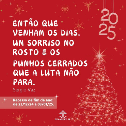 Aproveitamos para informar que entre os dias 23/12/2024 e 03/01/2025 as atividades do Sindicato estão suspensas.