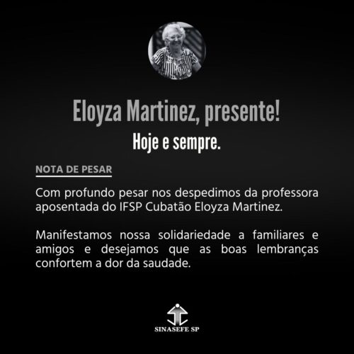 Com profundo pesar nos despedimos da professora aposentada do IFSP Cubatão Eloyza Martinez.
