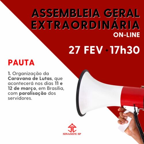 O Sinasefe-SP convoca as e os servidores(as) do IFSP, especialmente aqueles que aderiram à greve de 2024, para participar da Assembleia Geral nesta quinta-feira (27).