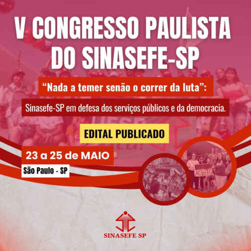 Confira a íntegra do EDITAL. E para mais informações acesse o site oficial do V Congresso do nosso Sindicato: conpasi.sinasefesp.org.br