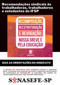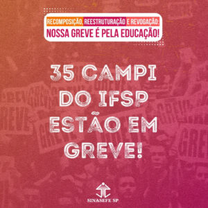 A partir do dia 03.04.2024 os Campi do Instituto Federal de Educação, Ciência e Tecnologia de São Paulo (IFSP) entram em greve, num movimento nacional, articulado com toda a base do Sinasefe e também com professores e técnicos administrativos das universidades federais.