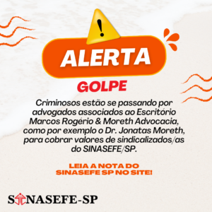 Criminosos estão se passando por advogados associados ao Escritório Marcos Rogério & Moreth Advocacia, como por exemplo o Dr. Jonatas Moreth, para cobrar valores de sindicalizados/as do SINASEFE/SP. Afirmamos que o Escritório Marcos Rogério...