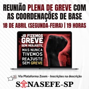 📢✊🏿 HOJE! 1ª REUNIÃO DE GREVE COM A COORDENAÇÃO PLENA DO SINASEFE-SP 🙋🏿♀️🙋🏽♂️🙋🏻♀️ Convidamos as Coordenações de Base para construir estratégias de mobilização para a Campanha Salarial 2022 e a construção da Greve Unificada dos servidores públicos federais. Participe! 🗓️ 18...