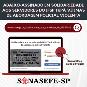 O Sinasefe-SP manifesta total apoio aos servidores sindicalizados Fanley Bertoti da Cunha e Fernando Mendonça Heck, em virtude da abordagem policial a qual foram submetidos ontem, 9 de março, na cidade de Tupã, após participação dos trabalhadores em um...