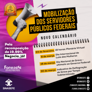 NOVO CALENDÁRIO DE LUTAS | CAMPANHA SALARIAL NACIONAL UNIFICADA DO FUNCIONALISMO PÚBLICO ATENÇÃO! Os servidores públicos federais têm um novo calendário para construir na luta pela recomposição salarial emergencial de 19,99%. A agenda de atividades, aprovada em reunião do Fonasefe...