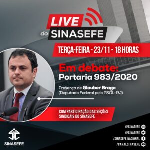 PORTARIA 983/2020 | Amanhã, dia 23/11, a partir das 18 horas, o Sinasefe Nacional realizará uma live com o deputado federal Glauber Braga (PSOL-RJ), relator dos PDLs que pedem a revogação da Portaria 983. A transmissão contará ainda com a...