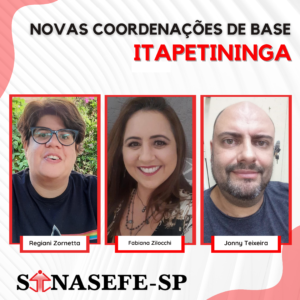 ✊🏾🚩 NOVAS COORDENAÇÕES DE BASE DO SINASEFE-SP | ITAPETININGA Em assembleia local, trabalhadoras e trabalhadores do Câmpus Itapetininga elegeram Fabiana Zilocchi, Jonny Nelson Teixeira e Regiani Zornetta como Coordenadores de Base do nosso sindicato. SAIBA MAIS: Acesse o novo material de...