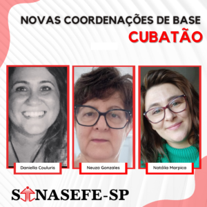 ✊🏾🚩 NOVAS COORDENAÇÕES DE BASE DO SINASEFE-SP | CUBATÃO Em assembleia local, trabalhadoras e trabalhadores do Câmpus Cubatão elegeram Daniella Couluris, Natália Salan Marpica e Neuza Maria Gonzales como Coordenadoras de Base do nosso sindicato. 🖱️📑 SAIBA MAIS: Acesse o novo...