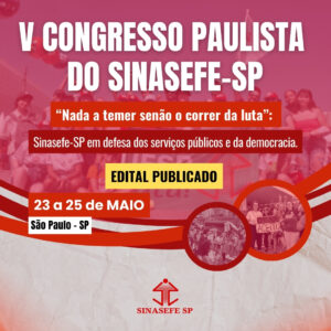 A Coordenação Funcional torna público o edital de convocação do V Congresso Paulista do Sinasefe-SP (CONPASI), que será realizado de 23 a 25 de maio de 2025, no Hotel San Raphael, no Centro Histórico de São Paulo. Instância máxima...