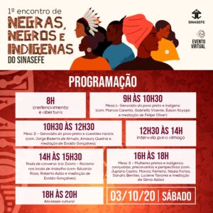 Anote em sua agenda: está marcado para o primeiro sábado de outubro (03/10), entre 8h e 20h, o 1º Encontro de Negras, Negros e Indígenas do SINASEFE (ENNI). O evento, que será realizado virtualmente, tem o objetivo de ouvir...