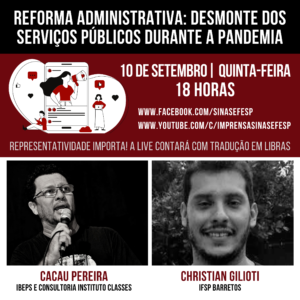 REFORMA ADMINISTRATIVA | A Proposta de Emenda Constitucional (PEC) da Reforma Administrativa foi encaminhada nesta quinta-feira, 03 de setembro, à Câmara dos Deputados, para iniciar a tramitação. A proposta abre caminho para a destruição do regime jurídico dos servidores públicos...