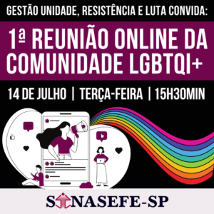 Na próxima terça-feira, dia 14 de julho, a tradicional live do Sinasefe-SP dará espaço para uma reunião ampliada da comunidade LGBTQI+ do Instituto Federal de São Paulo, com o objetivo de construir o Primeiro Encontro Estadual da nossa Seção...