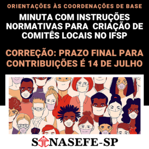 ATENÇÃO! O prazo final para colaborações é 14 de julho! Confira, no vídeo, o recado do professor JEAN ZEFERINO, Coordenador Estadual do Sinasefe-SP, sobre a importância de levar em consideração as especificidades...
