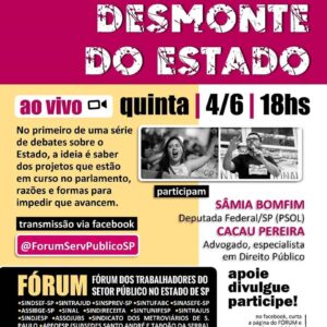 O Fórum dos Trabalhadores do Setor Público do Estado de São Paulo, do qual o Sinasefe-SP faz parte, promoverá uma série de debates sobre o desmonte do Estado e nosso papel enquanto classe trabalhadora para evitar o avanço do...
