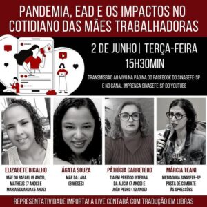 O tema do próximo programa, dia 2 de junho, será "Pandemia, EAD e os impactos no cotidiano das mães trabalhadoras" com a contribuição das companheiras Ágata Souza, Elizabete Bicalho e Patrícia Andreia. 🌐 A transmissão será iniciada às 15h30min no...