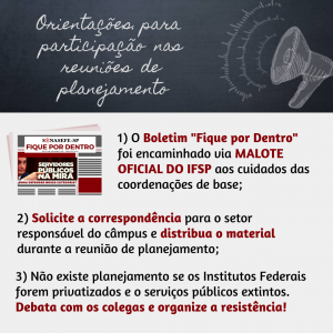 Os boletins do sindicato são uma ferramenta para ajudar nos debates. Vamos organizar a resistência contra os ataques do governo e mobilizar a comunidade acadêmica! Saiba mais: Fique por dentro! Edição de janeiro do boletim do...