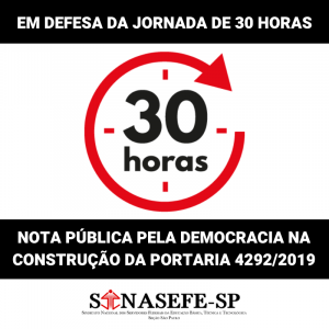 O Sinasefe-SP repudia a condução autoritária da Reitoria do Instituto Federal de São Paulo em relação a construção da Portaria 4292/2019 que potencialmente extingue a jornada de 30 horas dos trabalhadores Técnicos Administrativos, uma vez que a condiciona à...