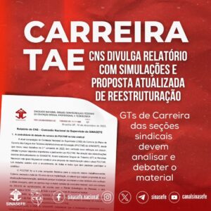 A Comissão Nacional de Supervisão do SINASEFE (CNS) divulgou nesta segunda-feira (18/12) um relatório analítico das propostas de reestruturação da carreira de técnico-administrativos(as). O material apresenta dados, elucida os pontos convergentes (que são a maioria) e os pontos divergentes...