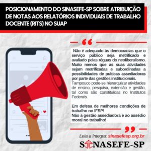 Neste final do primeiro semestre de 2023, docentes do IFSP estão sendo convidadas e convidados a levantar mais um aspecto importante do debate sobre os processos avaliativos do serviço público em geral e, em particular, do setor...