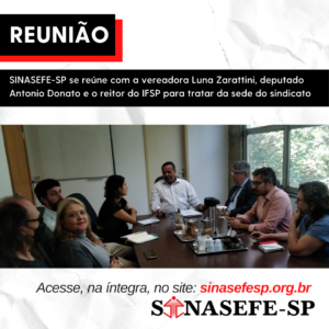 Na terça-feira, 02 de maio, o SINASEFE-SP, representado pelos seus coordenadores estaduais, Maíra Martins, Márcio Alves e Rogério de Souza, se reuniu com a vereadora Luna Zarattini (PT), o deputado estadual Antonio Donato (PT) e o reitor...