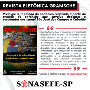 Prestigie a 3ª edição do periódico realizado a partir do projeto de extensão que envolve docentes e estudantes dos campi São José dos Campos e Cubatão, além de intelectuais acadêmicos e personalidades da cultura e do mundo do trabalho. O...