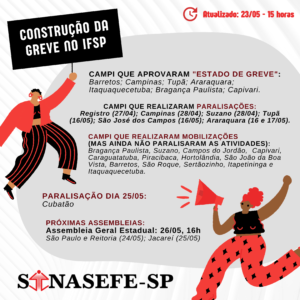 REAJUSTE? COM LUTA, É POSSÍVEL! | MAPA DA CONSTRUÇÃO DA GREVE NO INSTITUTO FEDERAL DE SÃO PAULO Em 2021, os servidores federais derrotaram, com muita luta, a Reforma Administrativa (PEC 32/2020) pretendida por Bolsonaro e Paulo Guedes – e que...