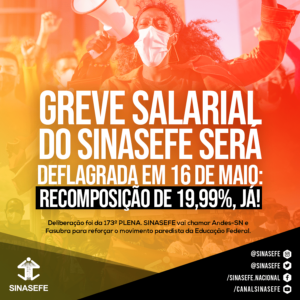Via Sinasefe Nacional O SINASEFE, suas seções sindicais e, principalmente, as trabalhadoras e os trabalhadores que compõem a base do sindicato, vão paralisar as atividades na Rede Federal de Educação Profissional, Científica e Tecnológica, numa greve nacional por tempo indeterminado,...