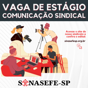 VAGA DE ESTÁGIO: COMUNICAÇÃO SINDICAL | RETIFICAÇÃO DO EDITAL INSCRIÇÕES PRORROGADAS! O Sinasefe-SP prorroga as inscrições para a vaga de estágio na área de Comunicação do sindicato. A jornada semanal é de 30 horas - na cidade de São Paulo -...