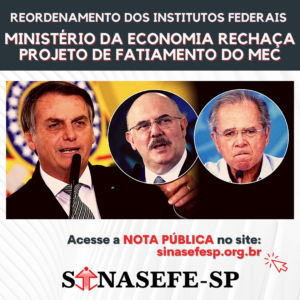 REORDENAMENTO DOS INSTITUTOS FEDERAIS | Ministério da Economia rechaça o projeto de fatiamento do Ministério da Educação; confira a NOTA PÚBLICA elaborada pela Coordenação Funcional do Sinasefe-SP Segundo reportagem da Folha de S. Paulo desta quinta-feira, 9/12, até o Ministério...