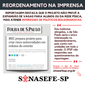 Reportagem do Jornal Folha de S.Paulo destaca que o projeto do MEC não prevê a expansão de vagas de alunos ou da rede física, mas atende aos interesses de políticos aliados ao governo Bolsonaro gerando insustentáveis 3 mil novos...