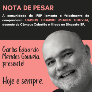 ⚫ NOTA DE PESAR | A comunidade acadêmica do Instituto Federal de São Paulo lamenta profundamente o falecimento do companheiro CARLOS EDUARDO MENDES GOUVEIA, docente do Câmpus Cubatão e filiado ao Sinasefe-SP. Expressamos nossa solidariedade aos familiares e amigos, além...
