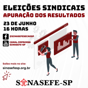 📹 A apuração dos resultados será transmitida ao vivo simultaneamente no Canal Imprensa Sinasefe-SP do Youtube e na página do sindicato no Facebook a partir das 16 horas do dia 23 de junho (quarta-feira). Acompanhe! As votações para decidir a...