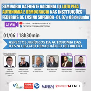 MESA: Aspectos Jurídicos da Autonomia das IFEs no Estado Democrático de Direito Felipe de Santa Cruz: Presidente da OAB Deborah Duprat: Ministério Público Federal Tarso Genro: ex-Ministro de Estado João Carlos Salles: Reitor da UFBA Mediação: Marcel Parentoni (Reitor eleito da Unifei) e Anderson...