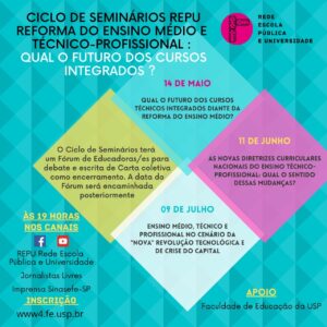 Reforma do Ensino Médio e Técnico-profissional: qual o futuro dos Cursos Integrados? O Ciclo de Seminários tem como proposta construir um espaço de intercâmbio e integração entre pesquisadores dos Institutos Federais, escolas de Ensino Técnico e Ensino Médio da rede...