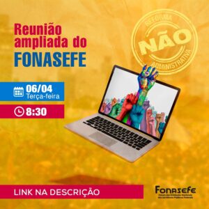 O Fonasefe convida os fóruns e entidades estaduais e municipais do serviço público para participarem de uma Reunião Ampliada que será realizada amanhã (06/04), a partir das 8h30min, de maneira virtual. A Reunião Ampliada será restrita a representações de entidades...