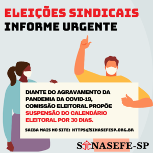 ELEIÇÕES SINDICAIS | INFORME URGENTE A Comissão Eleitoral considerando que: 1 – Vivemos um agravamento da Pandemia de COVID-19 com números muito maiores que aqueles verificados na chamada primeira onda, que ocorreu no ano de 2020, números esses com média móvel...