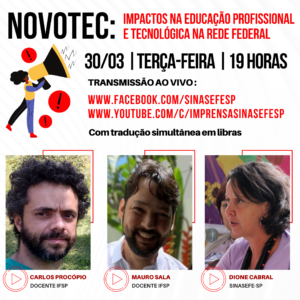 🚨📢 LIVE SINASEFE-SP | NOVOTEC: IMPACTOS NA EDUCAÇÃO PROFISSIONAL E TECNOLÓGICA NA REDE FEDERAL No programa da próxima terça-feira, 30 de março, vamos debater o processo de implementação da Reforma do Ensino Médio a partir do programa NOVOTEC, que introduz...