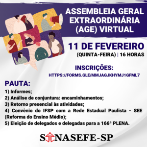 São Paulo, 11 de fevereiro de 2021 O Sinasefe-SP, Sindicato Nacional dos Servidores Federais da Educação Básica, Profissional e Tecnológica - Seção São Paulo, de acordo com deliberação em Assembleia...